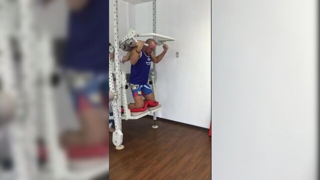 мама оседлала сына верхом